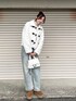 ケミカルウォッシュのデニムに白のモッズコートがたまらなく可愛いモテコーデじゃん❔⛄️
