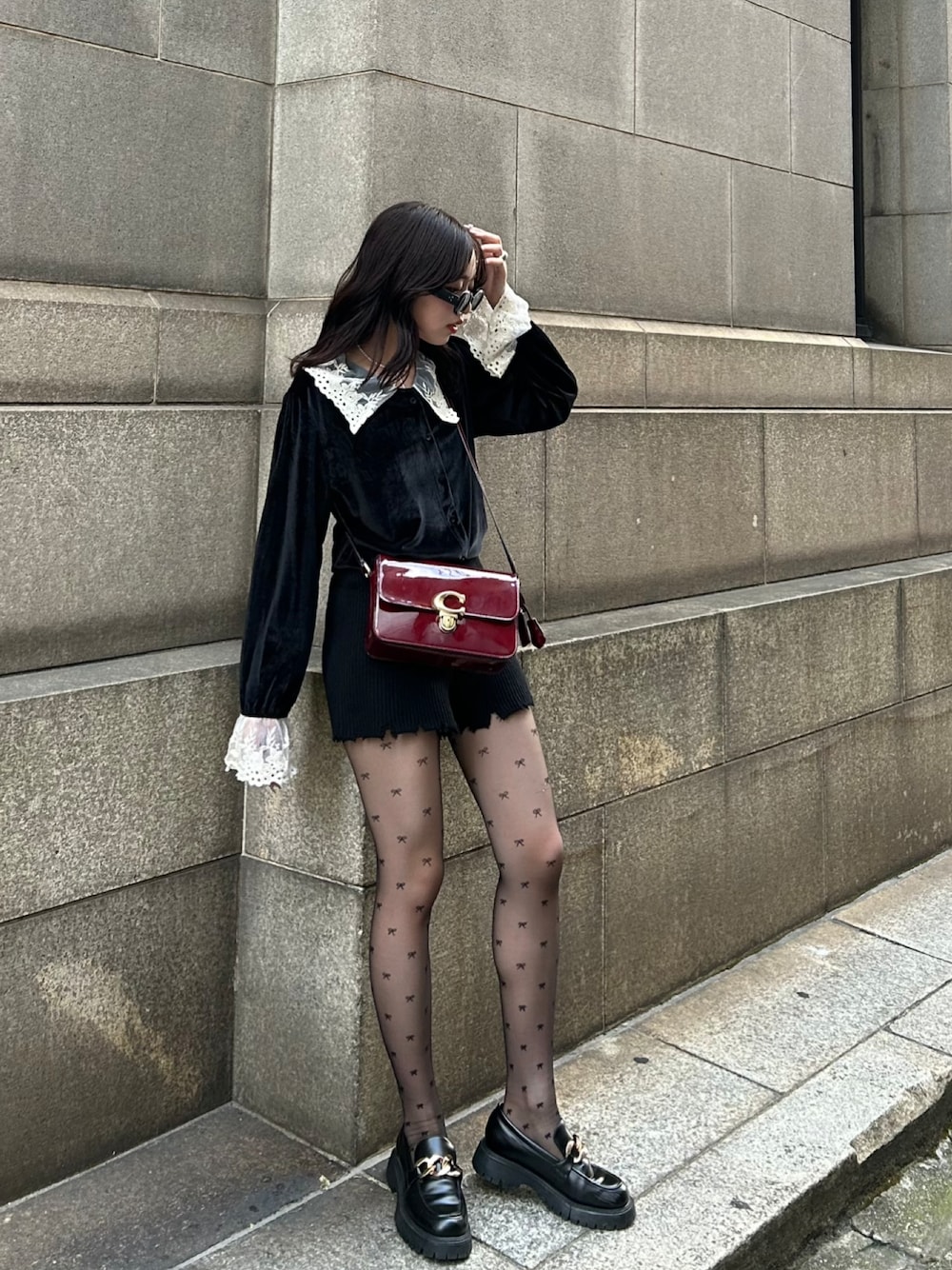 ガーリーなトップスもコーデの色味次第で上品な海外lookに、、🖤✨️