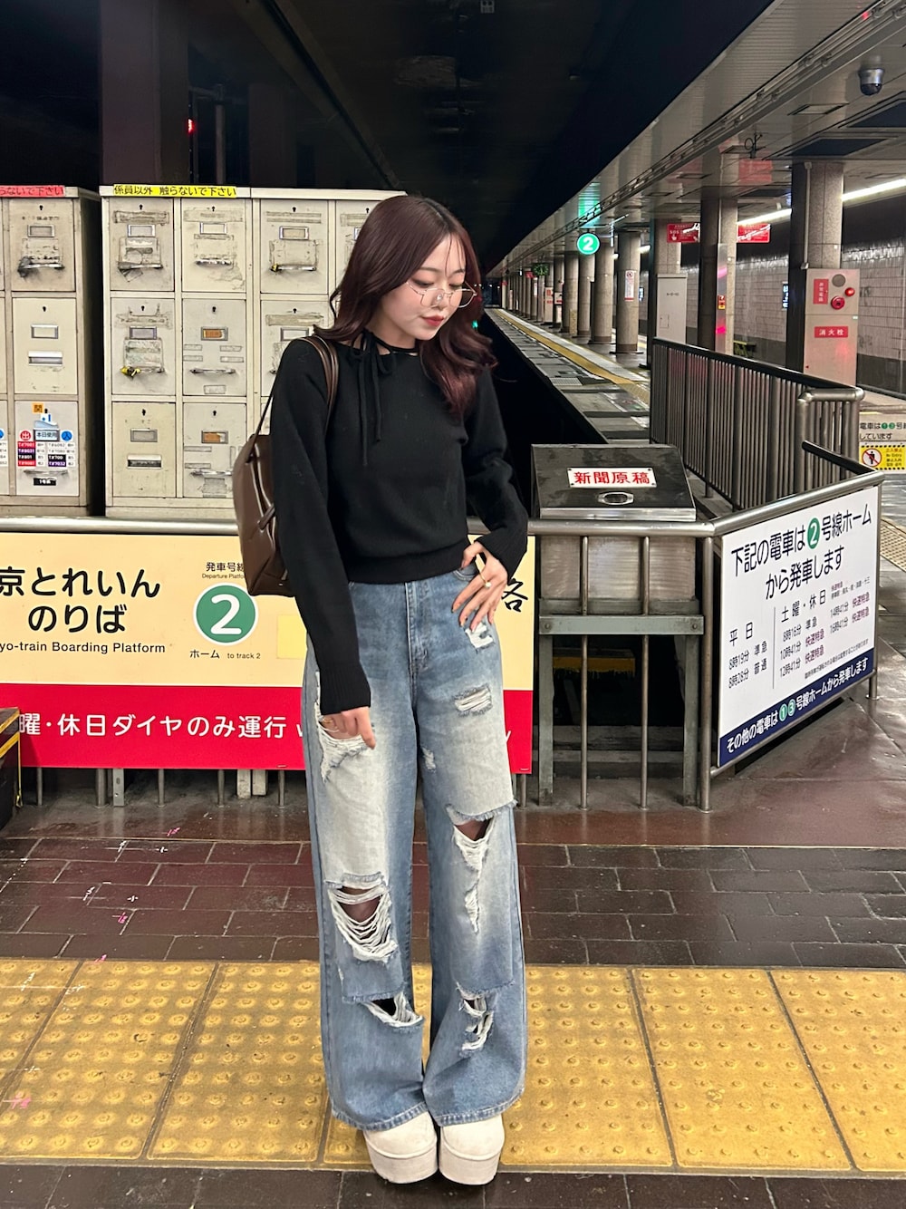 バレンタインカラーのカバンがお気に入り🍫 シルバーぶちのメガネもやっと韓国でゲットできた嬉しい♥.♥