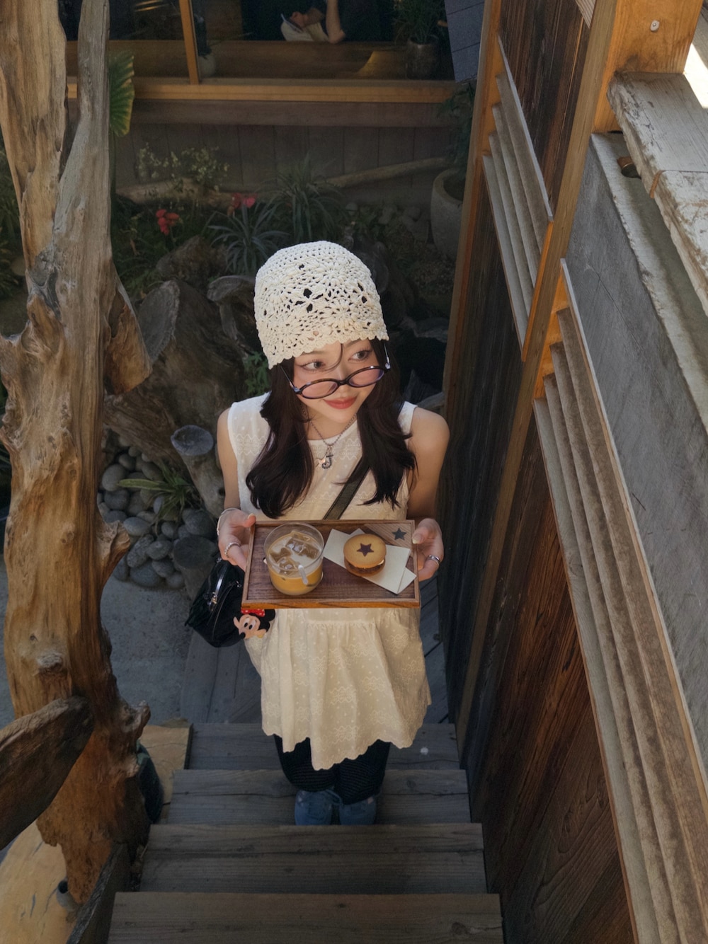 可愛すぎたなぁこのカフェ💭 木の温もり感じれる系ほんとすき。。❕ コーデもお気に入りなのー🎶