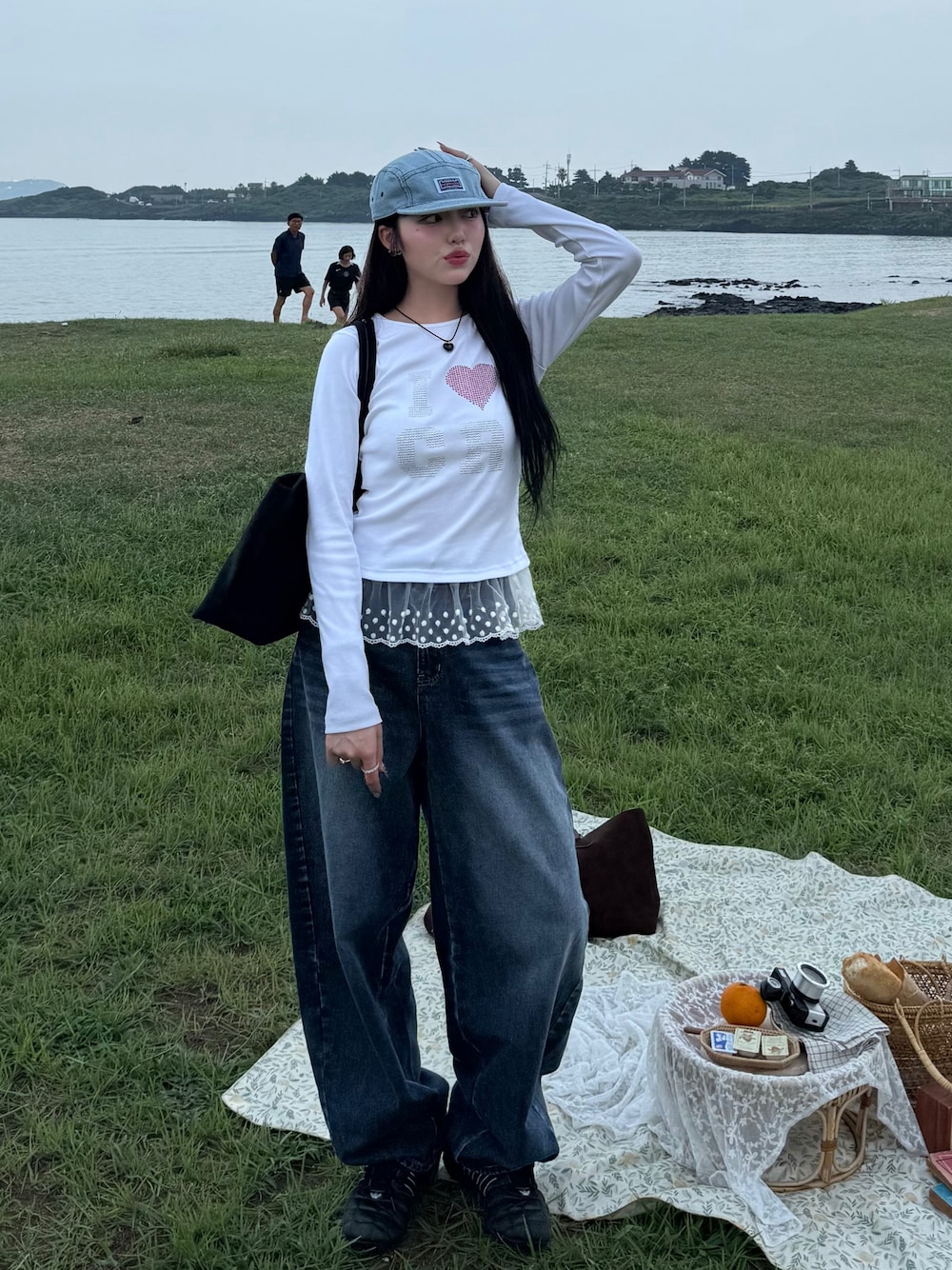デニム合わせでキャップもデニム生地💭♬.*゚ このコーデ古着っぽくもあり韓国っぽくもあり、、お気に入りだ🙂↕️✨