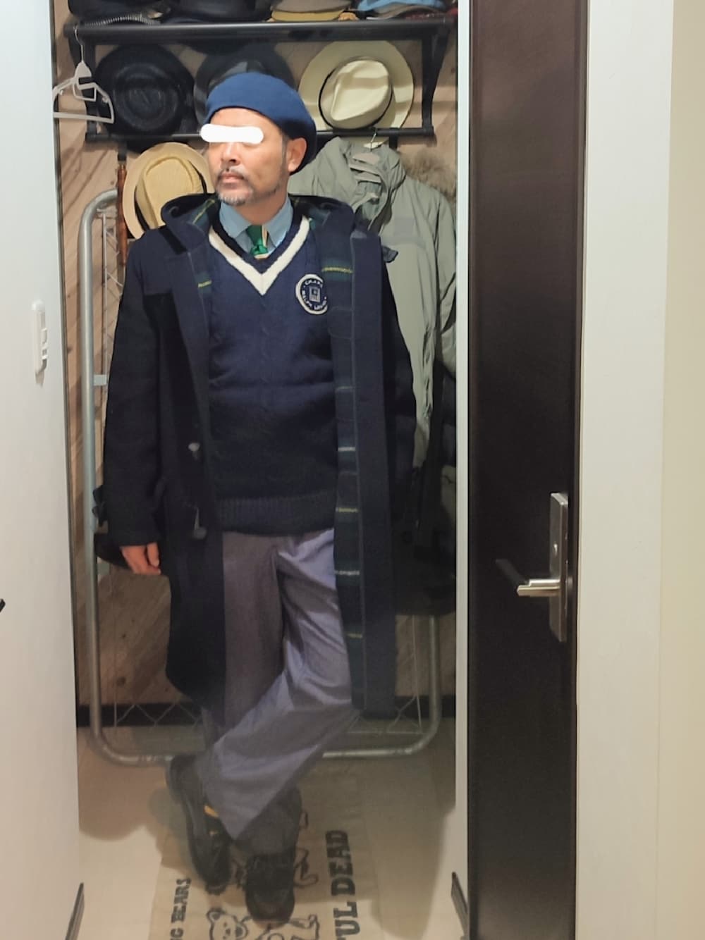 ネイビーベースのブルー系ワンカラーでフレンチアイビー 年末に購入したチルデンニットを初下し。 ブルーで統一しようとネイビーのダッフルにシャンブレーシャツを合わせる。 どうせなら下半身もブルー系にしようということで、フランス軍のデニムスラックスで。 ネクタイはグリーンベースにネイビーとイエローが入ったボーダーで、裏地の色を拾った。