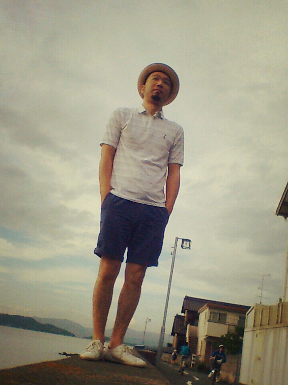 先日の休みに息子と近所を散歩したときの格好♪ 自撮ってめっちゃ恥ずかしいのね♪ インカメの画質の荒らさに絶望