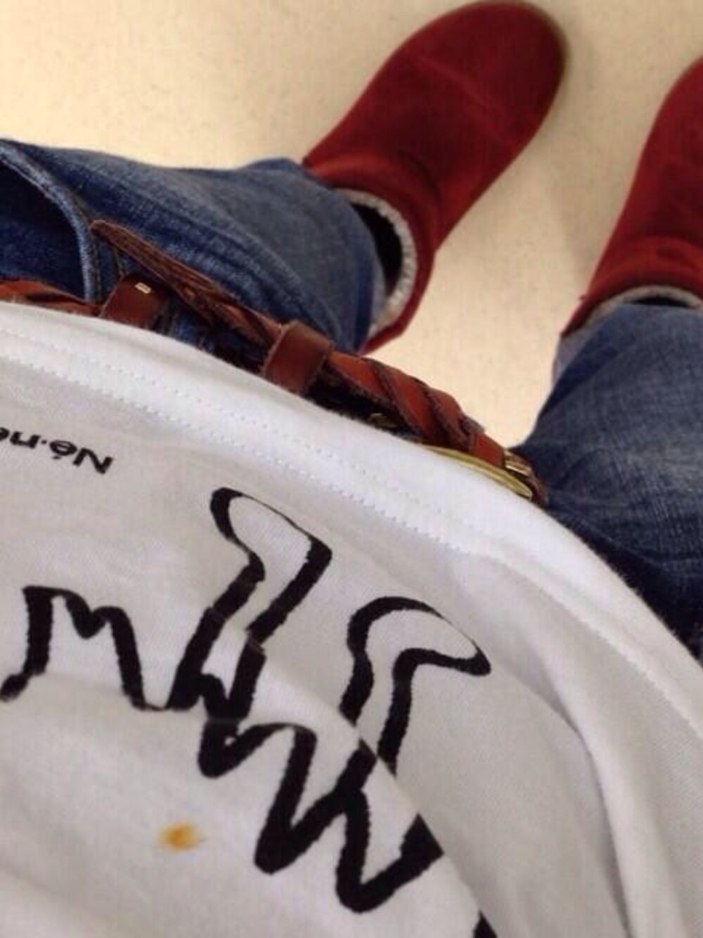 ナポリタンこぼした。 やらかしたん。 こぼし魔は白地着ちゃあかーん。