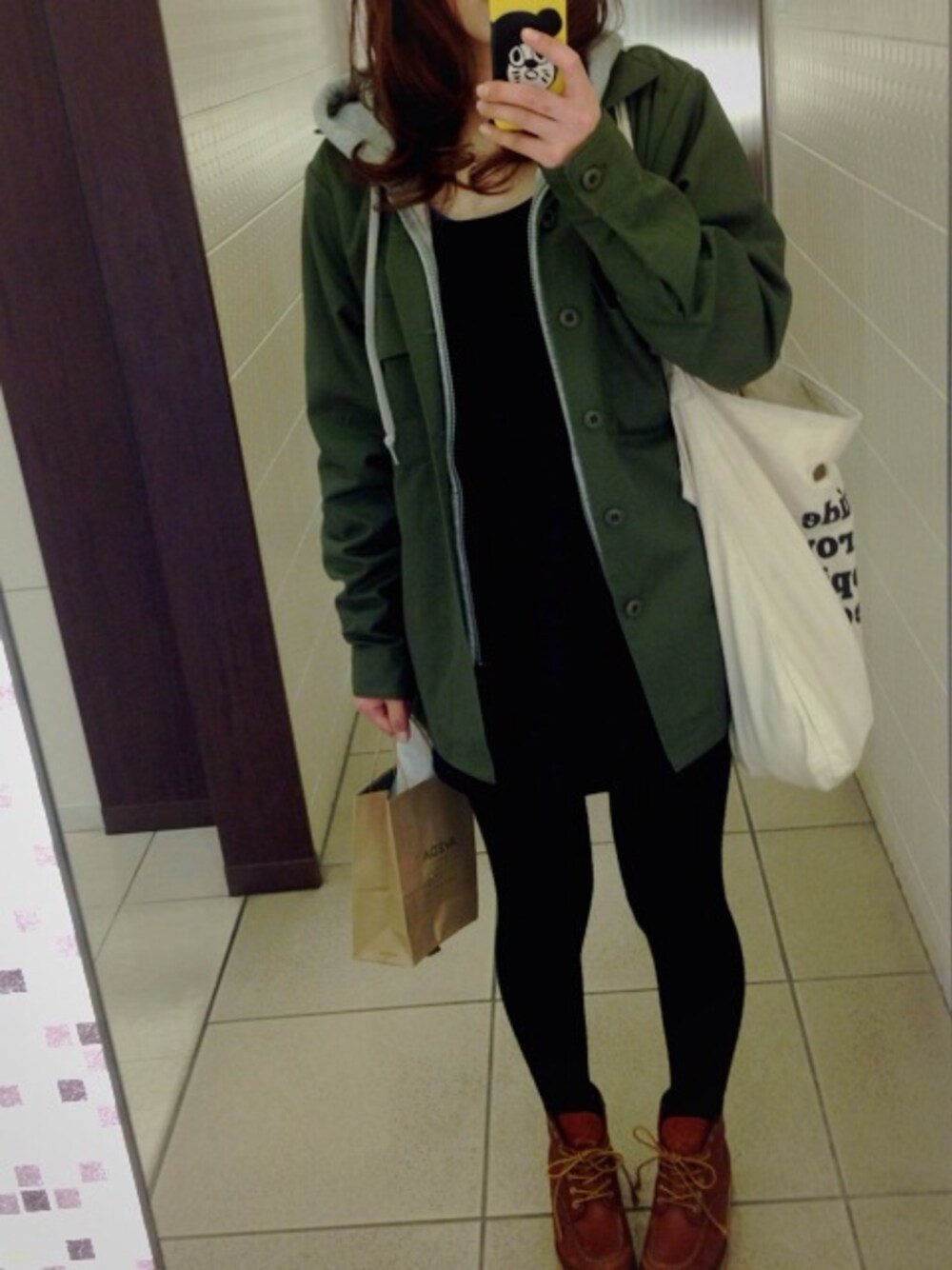 久々の美容院でちょきちょきしたった! ミリタリー*used パーカー*UNIQLO ワンピ*used タイツ*UNIQLO バック*ローリーズファーム