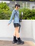 Saki(PAGEBOY ペリエ千葉)のブーツ「レースアップソックスブーツ 【3サイズ展開・厚底なのに軽量】」を使ったコーディネート