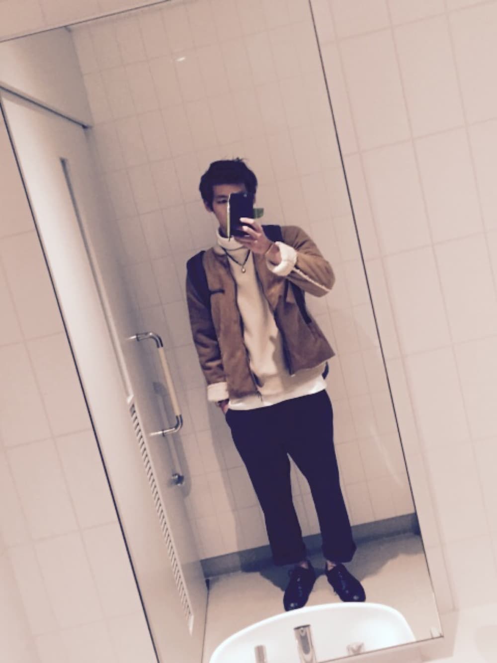 purple&yellowのムートンのライダース✨ 袖元ひっくり返すといかつい僕でも可愛らしい笑