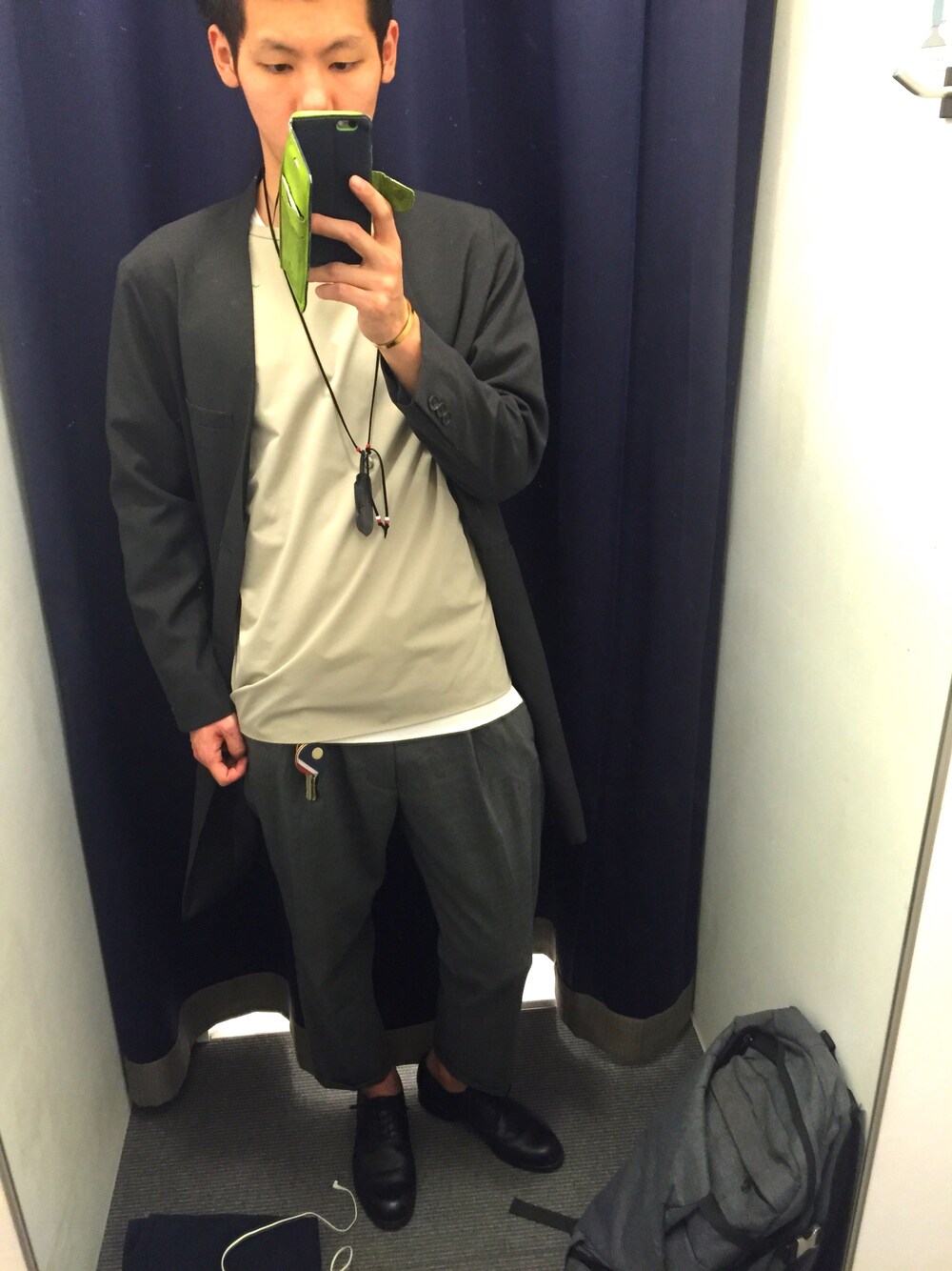 らももんのチェスターコート「ノーカラーコート(HARE)」を使ったコーディネート