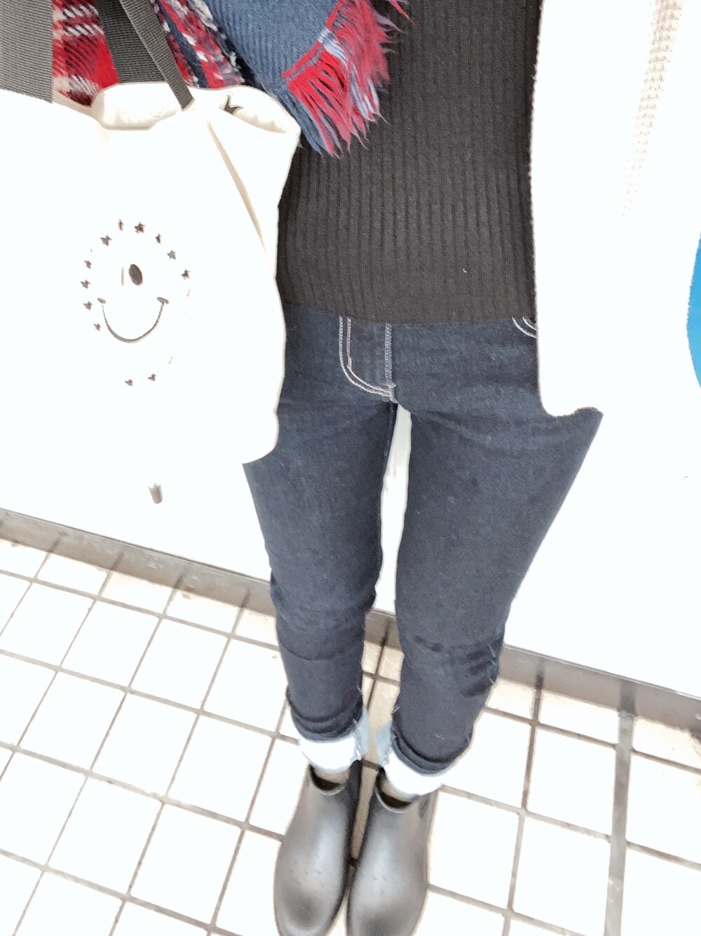 ☆ 雨の日コーデ☔️ 久しぶりのレインブーツと。 マフラーまで持って🧣