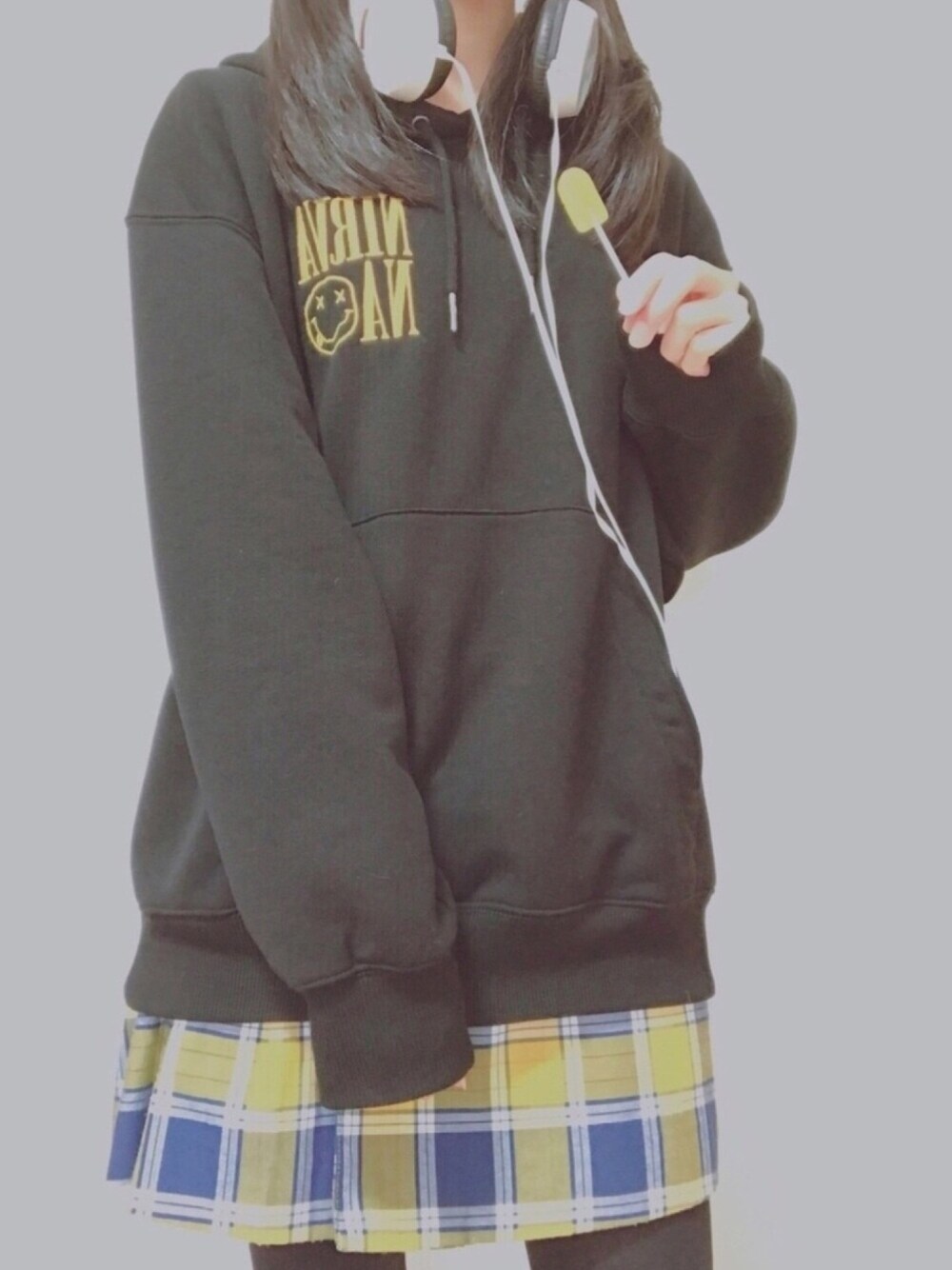 今日は、ロック系の服装か? いや、スクールガールか?わかんない!w こういう感じの人いるよね😎 にこちゃんの付いた黒のパーカーは弟の貸してもらった! メンズの!メンズだからでかい!w 弟が買う時、可愛いから黒にして!って全力でお願いしたよねw これからもたくさん借りる予定w それに黄色のチェックのスカートを合わせました! で、ヘッドホンとあめ🍭 あめ美味しい😋 リュック背おるの忘れた! 昨日は友達の家で遊んでて、今日は、妹と小さめの遊園地行ってきた🎢🎠🎡 その後は、友達と明治村に行って、イルミネーション見てきた✨ 寒すぎた🍃 でも、綺麗だったし、楽しかった😊