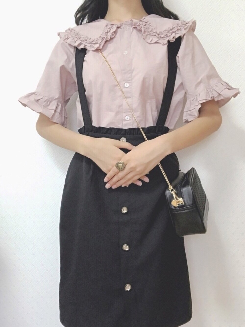 今日の服装は甘めかな🍬 このブラウスはmerry jennyのもので襟とフリルがついてて可愛いし、色んな服に合わせられるので気に入ってます! それに、黒のサスペンダースカートを合わせました! このサスペンダースカートは後ろがすっごく可愛くてリボンになってるんです🎀 後ろ姿を撮るのを忘れてしまったので見せれなくて残念なのですが…😢 なんか影で皆さん側から見て右手首だけ白くて腕が黒いw 今日はイオンに行ってきました! セールになってて安すぎるくらい安くスカートを買えました!! なのでまた紹介したいと思います!