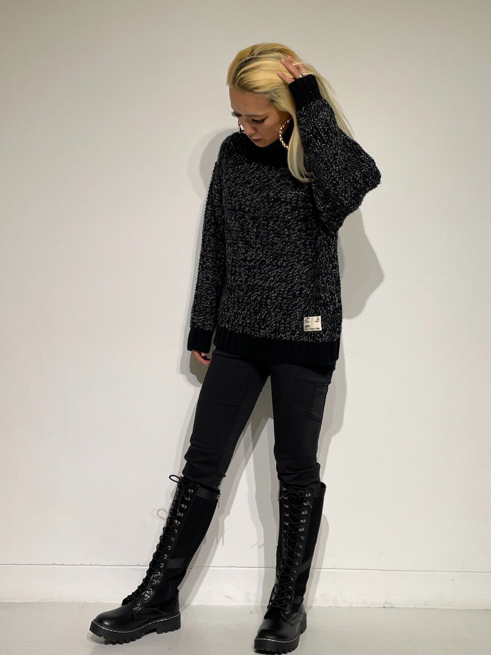 ✰NEW ITEM✰ AVIREXジョイナス横浜店、入荷直後から大人気です!!! すでに完売してるカラーがあるとかないとか…🤪 ✱タートルメランジニットトップス/BLACK着用 めちゃくちゃ可愛いボリュームあるニットです🧶 デートシーンなどで大活躍すること間違えなし👫💓 袖長めなのでロールアップしたり萌え袖してもありです💜⛄️❄️✨ タートルネック部分にジップが付いているので、開いて着て頂くことも可能です‼ 今回はカッコよくシンプルにALLBLACKでまとめてみました🖤⋆͛*͛ スカートなどとも相性抜群です👗💞 是非ご参考にしてみてください♡
