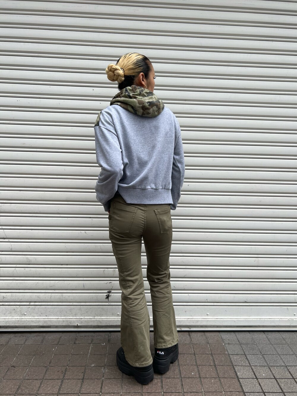 RAMU(AVIREX 相鉄ジョイナス店)のチノパンツ「【直営店限定】SATIN FLARE STRECH PANTS/サテンフレアストレッチパンツ」を使ったコーディネート