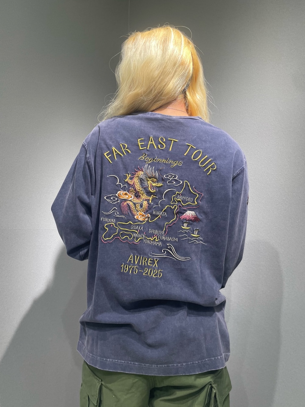 RAMU(AVIREX 相鉄ジョイナス店)のTシャツ/カットソー「《SOUVENIR COLLECTION》WASHED T-SHIRT "FAR EAST TOUR" / ウォッシュド 長袖Tシャツ "ファーイーストツアー" / AVIREX / アヴィレックス」を使ったコーディネート