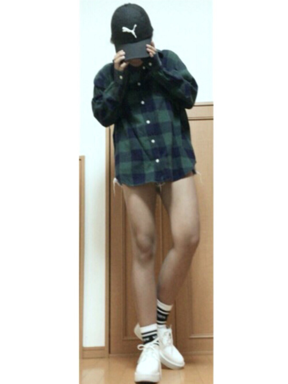 キャップ→PUMA ¥999 シャツ→MG ¥200 パンツ→ZARA ¥300 靴下→WEGO ¥300 シューズ→SLY ¥2400 合計 ¥4199💗