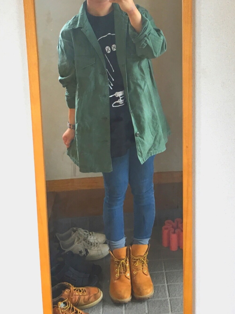 このミリタリーシャツを ジャケットみたいに着るのが 最近好きです😎 登場率多め。 ((この時期の羽織りものを持ってないから…