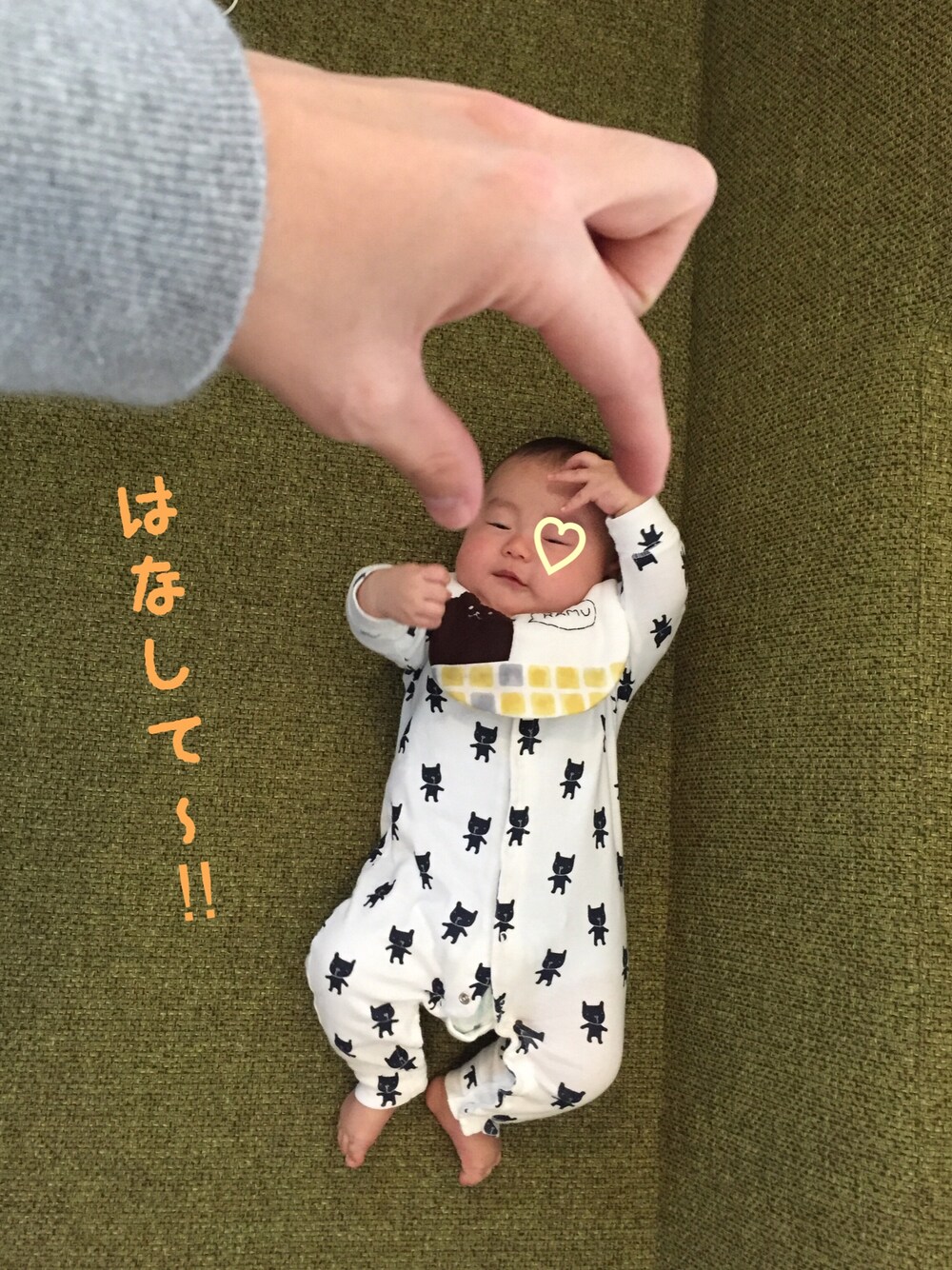 イエロー系のスタイ/よだれかけ、ホワイト系のロンパースを着用したキッズの冬コーディネートの1枚目の写真