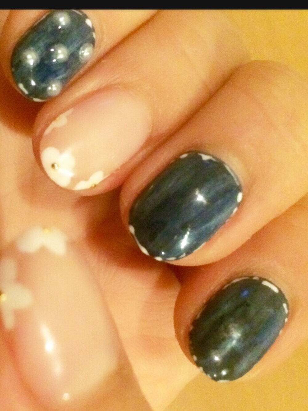 初投稿は、最近おnewにしたばかりの デニム×お花フレンチ ネイル♥︎♥︎♥︎
