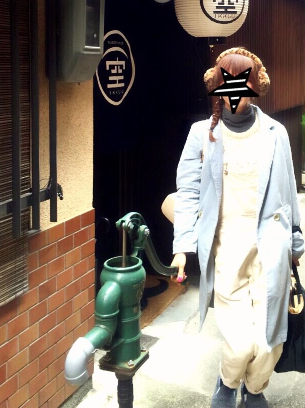 2月初めの寒い日の京都旅行にて! やっぱり、にゃーのイヤーマフ無敵、、! 白のコーデュロイ生地のカバーオールの中も 白〜水色のグラデカラーのニットで 寒い日のワントーン楽チンコーデ♡ コーデュロイ生地のアウターとセットUPぽく♪ インナーとスリッポンのグレーで引き締めっ!