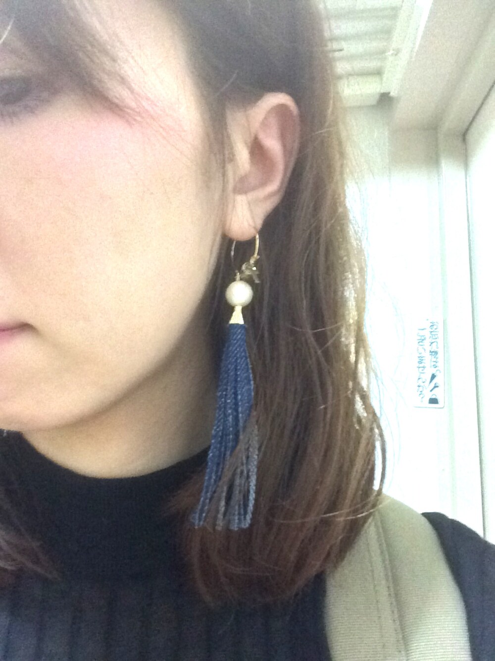 ハンドメイドのアクセサリー屋さんでオーダーした、デニムフリンジのピアス! フープのビーズのカラーやコットンパールの色も好きな色に♥︎ 可愛すぎる。。。