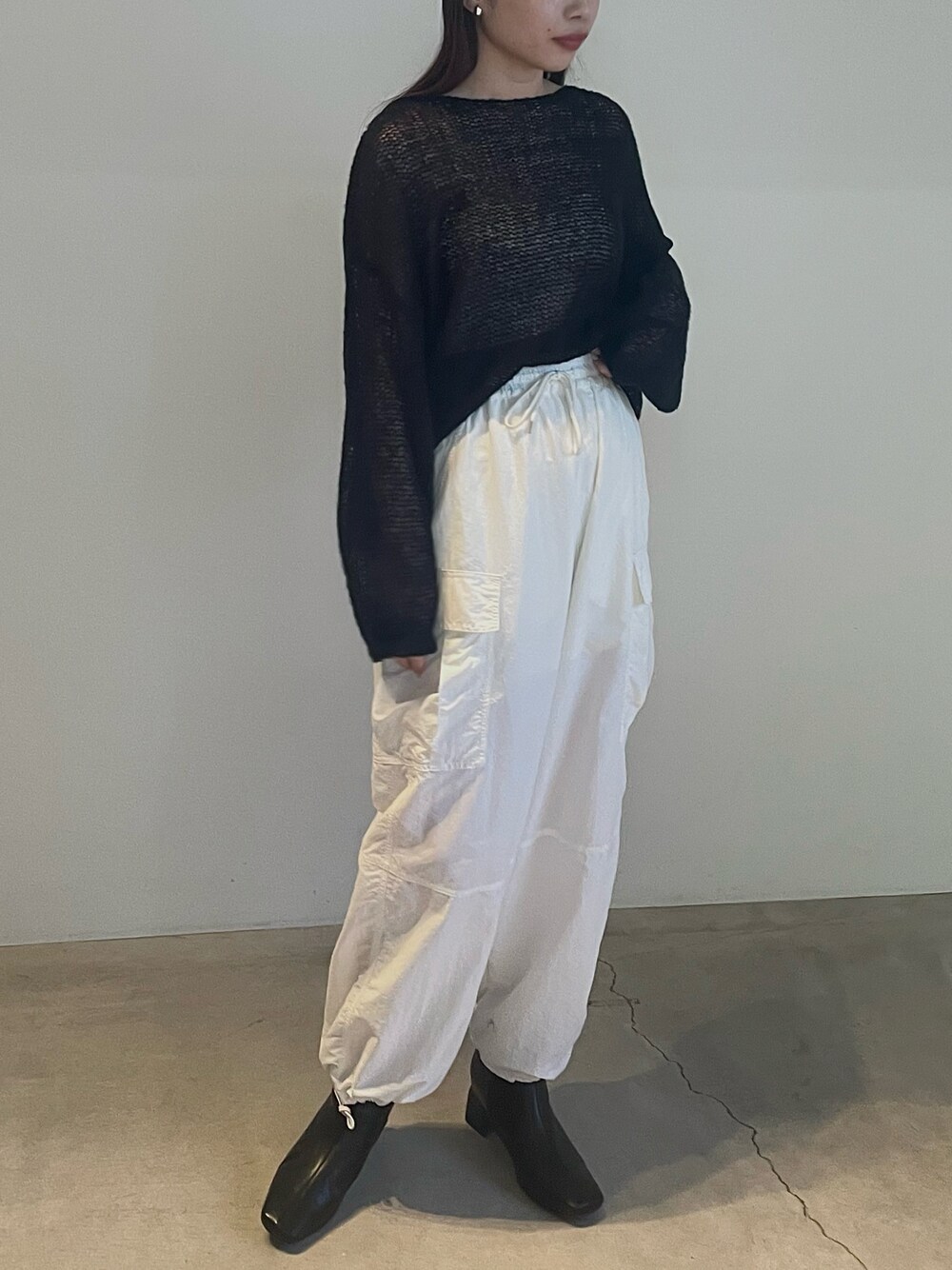 161cm / 骨格ウェーブ ZOZOでも大人気のモヘアニット🧶 カーゴパンツでミリタリースタイルに。