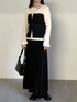 161cm / 骨格ウェーブ 首元と手首のデザインがかわいい1枚。 ビスチェとスカートの色味を合わせてセットアップ風に。