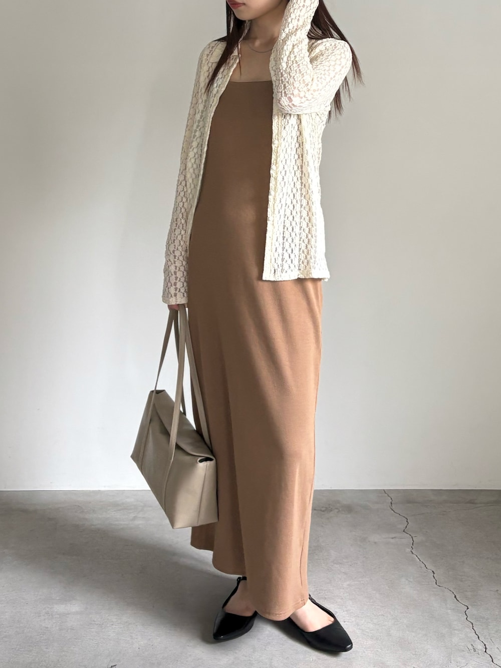 ran(MOCA office)のワンピース「【TALLあり】ダブルストラップカップ付きリブキャミワンピース≪スタイルアップ≫」を使ったコーディネート