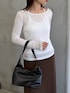 161cm / 骨格ウェーブ 取り入れるだけでトレンド感増すレイヤードトップス。少しタイトめなシルエットなので、華奢見えも叶えてくれます!! 少し広がり感のあるスカートやワイドパンツと相性◎
