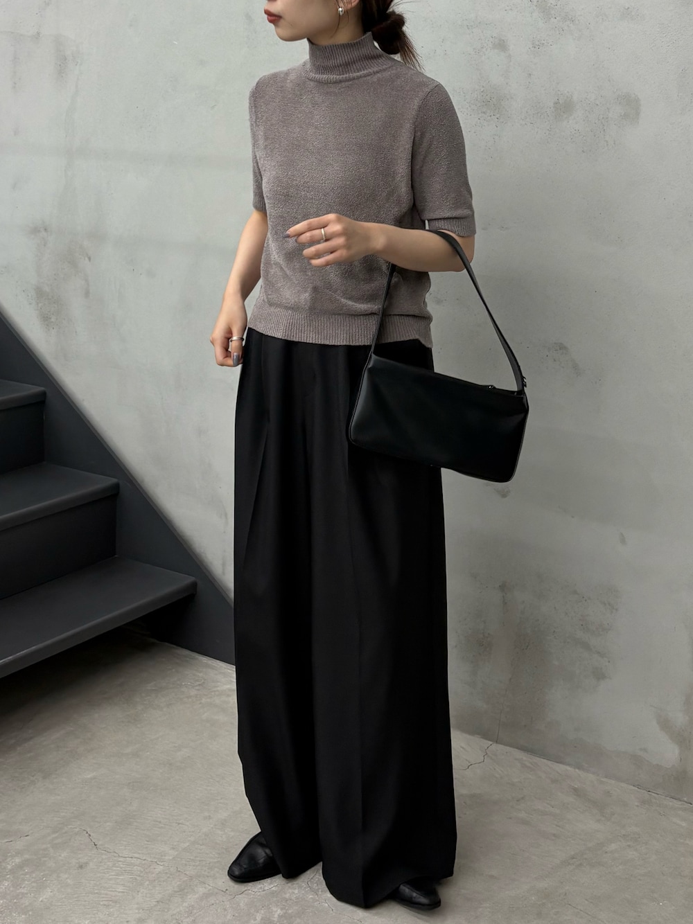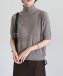 ran(MOCA office)のニット/セーター「ハイネックパイルハーフスリーブニット」を使ったコーディネート