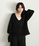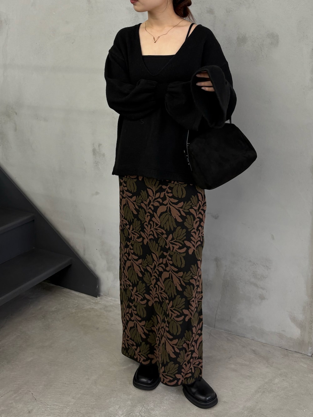 161cm / 骨格ウェーブ ディープVネックとベルスリーブが女性らしい1枚。柄アイテムと合わせてもケンカしないさりげないデザイン。 ディープVネックの良さを生かして、 キャミ合わせで首元スッキリさせるスタイルが おすすめ◎