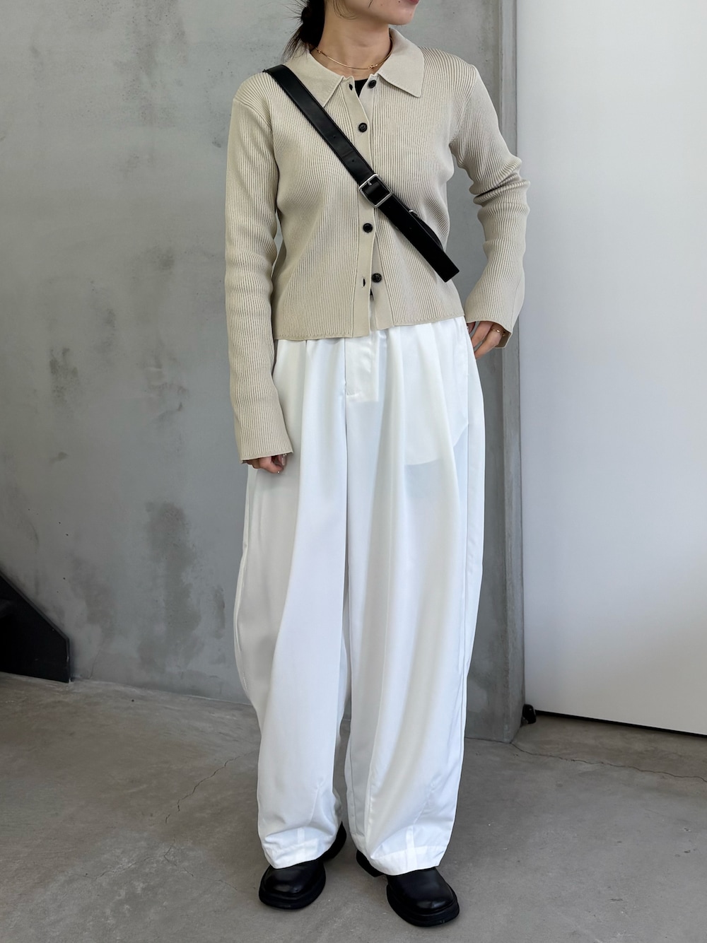 ran(MOCA office)のカーディガン/ボレロ「【軽量】スポンディッシュポロニットカーディガン / セットアップ対応可」を使ったコーディネート
