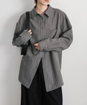 ran(MOCA office)のシャツ/ブラウス「ピーチスキンストライプオーバーシャツ」を使ったコーディネート