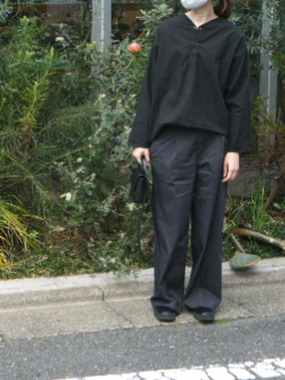 古着のブラウスは、米国の看護師の服で、元々水色だったものを黒に染めたとか👏