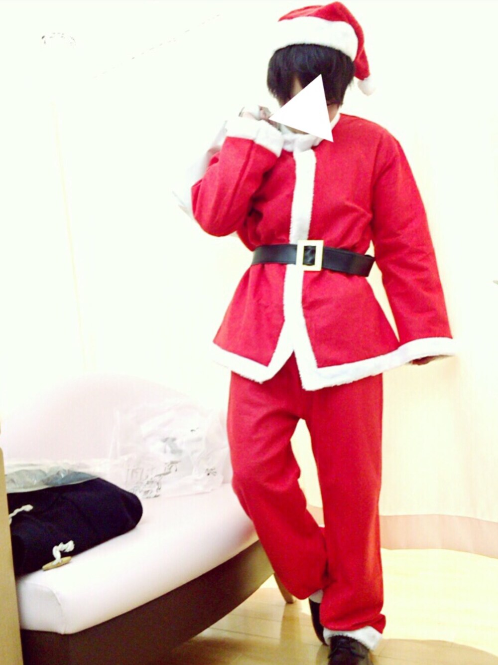 1日早めのさんたさん(笑) なかなかあったかいんだぜ😊 ベルトが上すぎたかもしれない😨