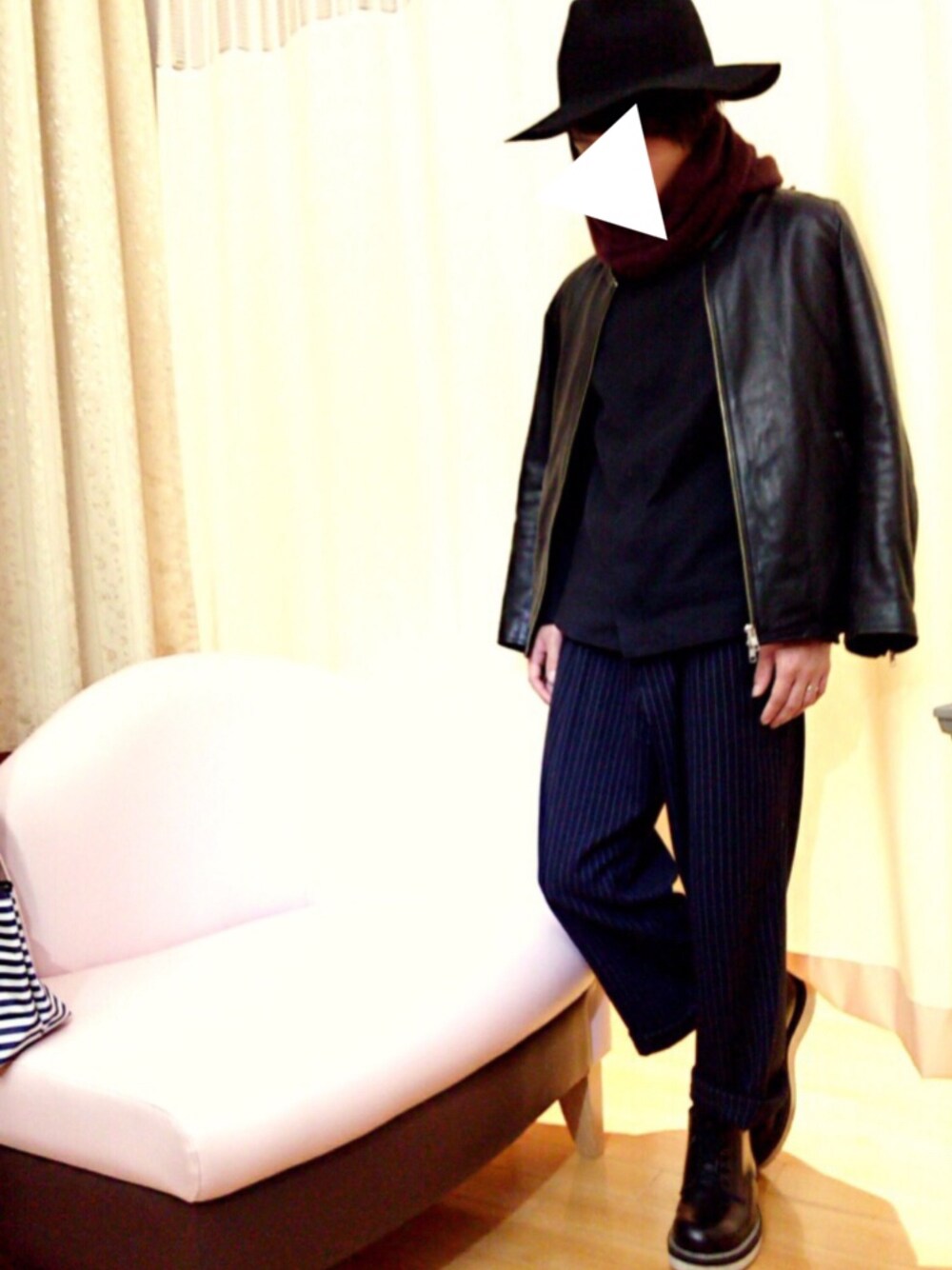 この前のコーデのレザーを肩掛けしてみました😎 全体的に黒が多めなのでボルドーのマフラーがさえますね😊! ついに雪が降ってきて外は寒すぎ⛄️