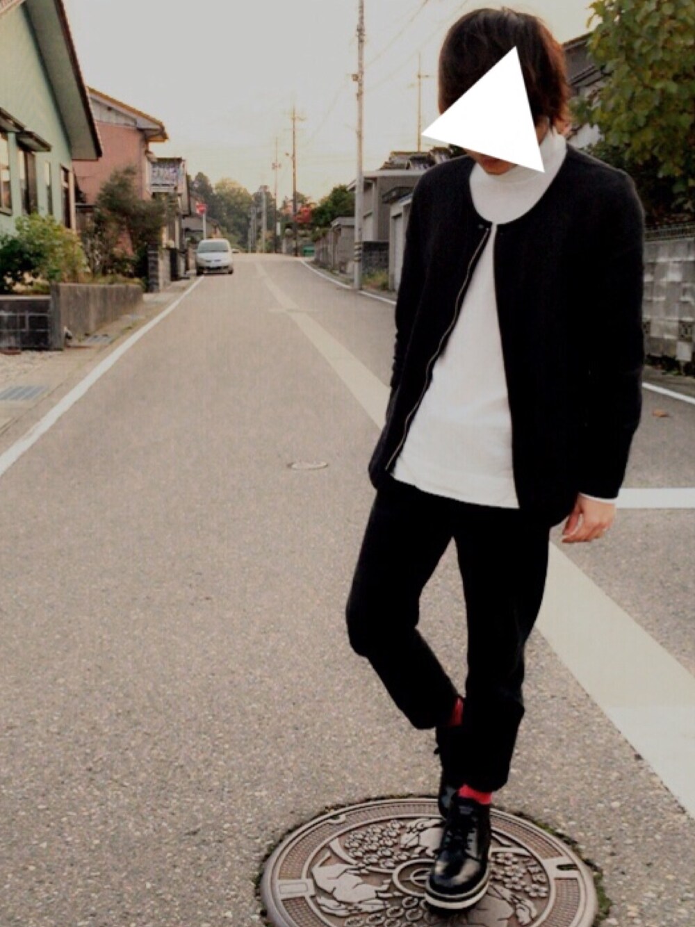 タートルネックがお気に入り☆ モノトーンで合わせました 靴下で赤の差し色🌹