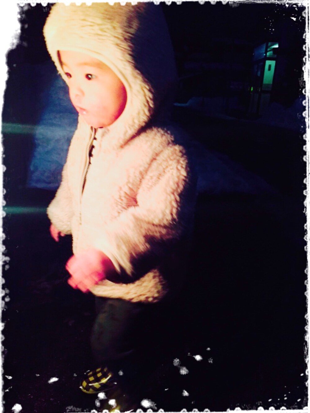 保育園帰宅後なぜか突然の散歩。寒いよー(●´ω`●)