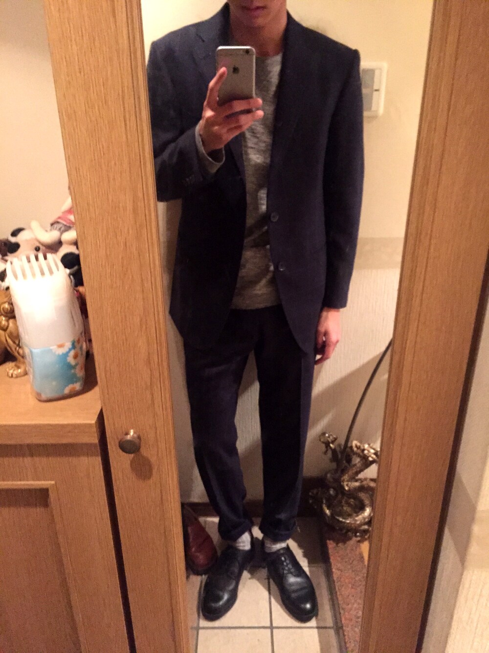 見づらいけどスーツはチェック柄。