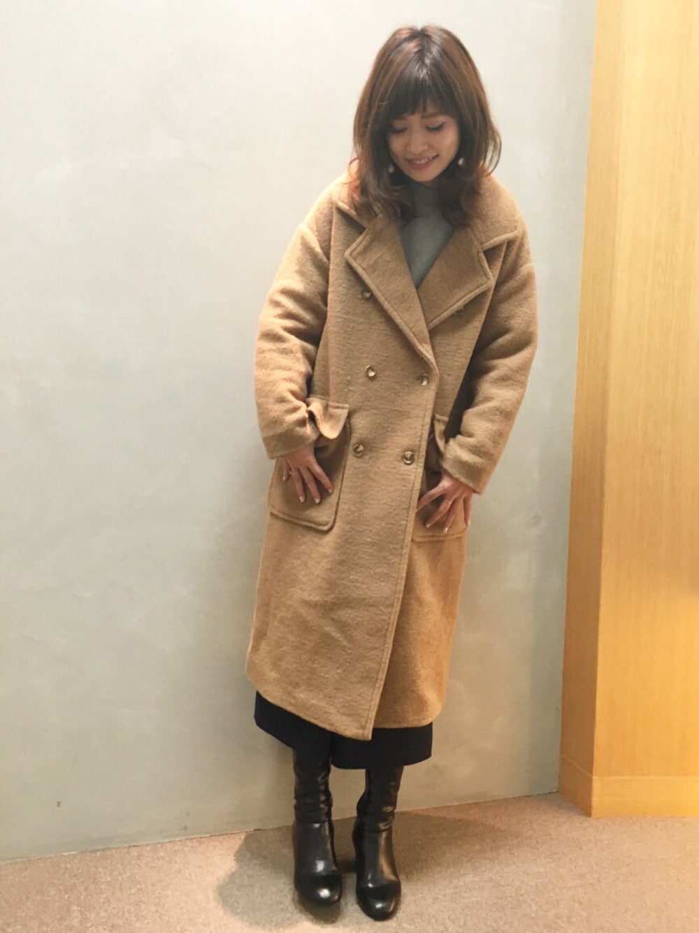 kinoのチェスターコート「ダブルボタンロングコート」を使ったコーディネート