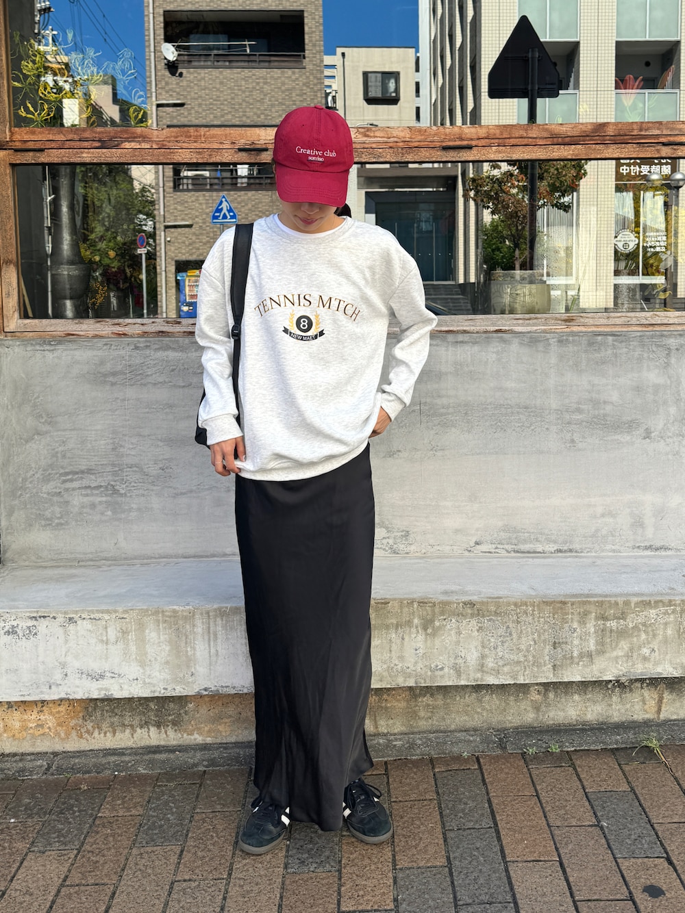 Sorrisoからのnew item♡ カジュアルにも綺麗目カジュアルにも◎ この日はサテンスカートで綺麗目に🫶🏻✨ 差し色キャップでカジュアルUP⤴︎