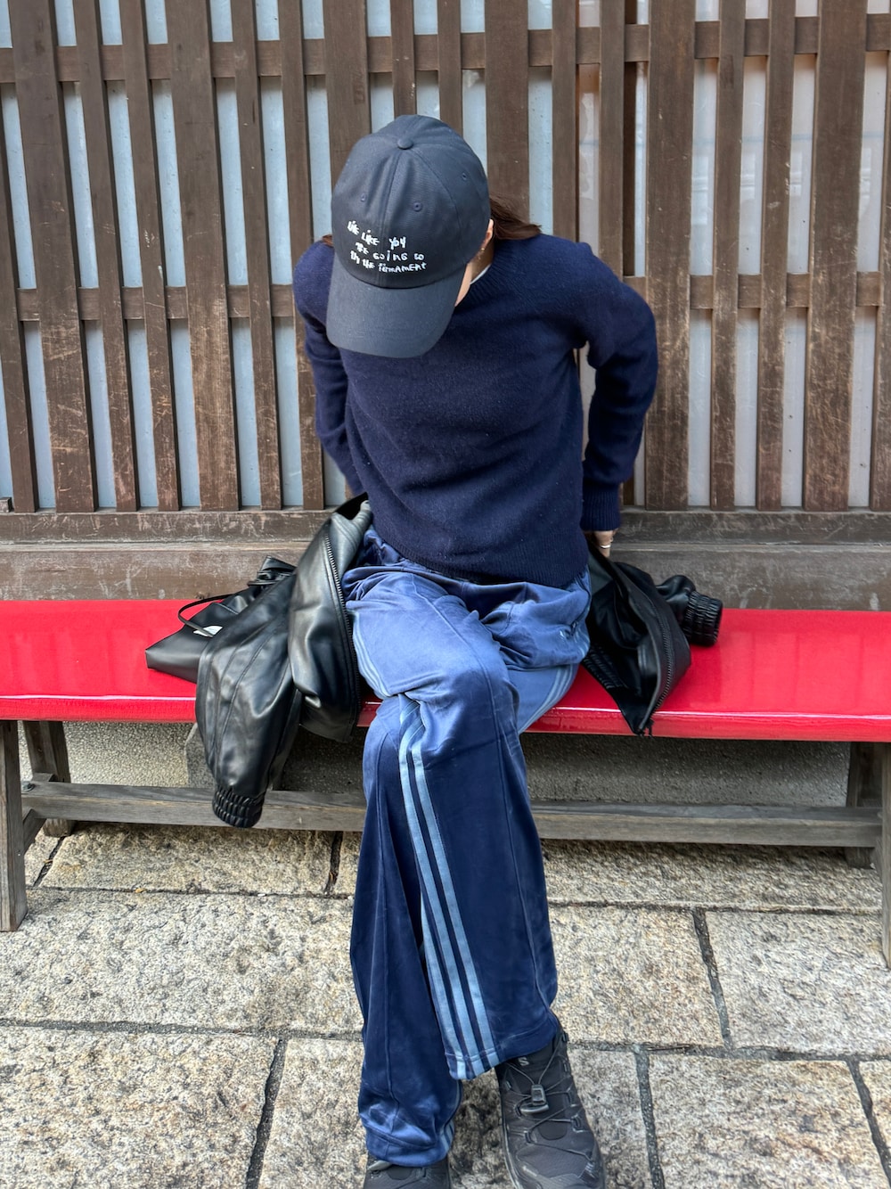 adidas Originalsのベロアトラックパンツ最近getしてお気に入り〜♡ この日はネイビーで揃えました✌🏼