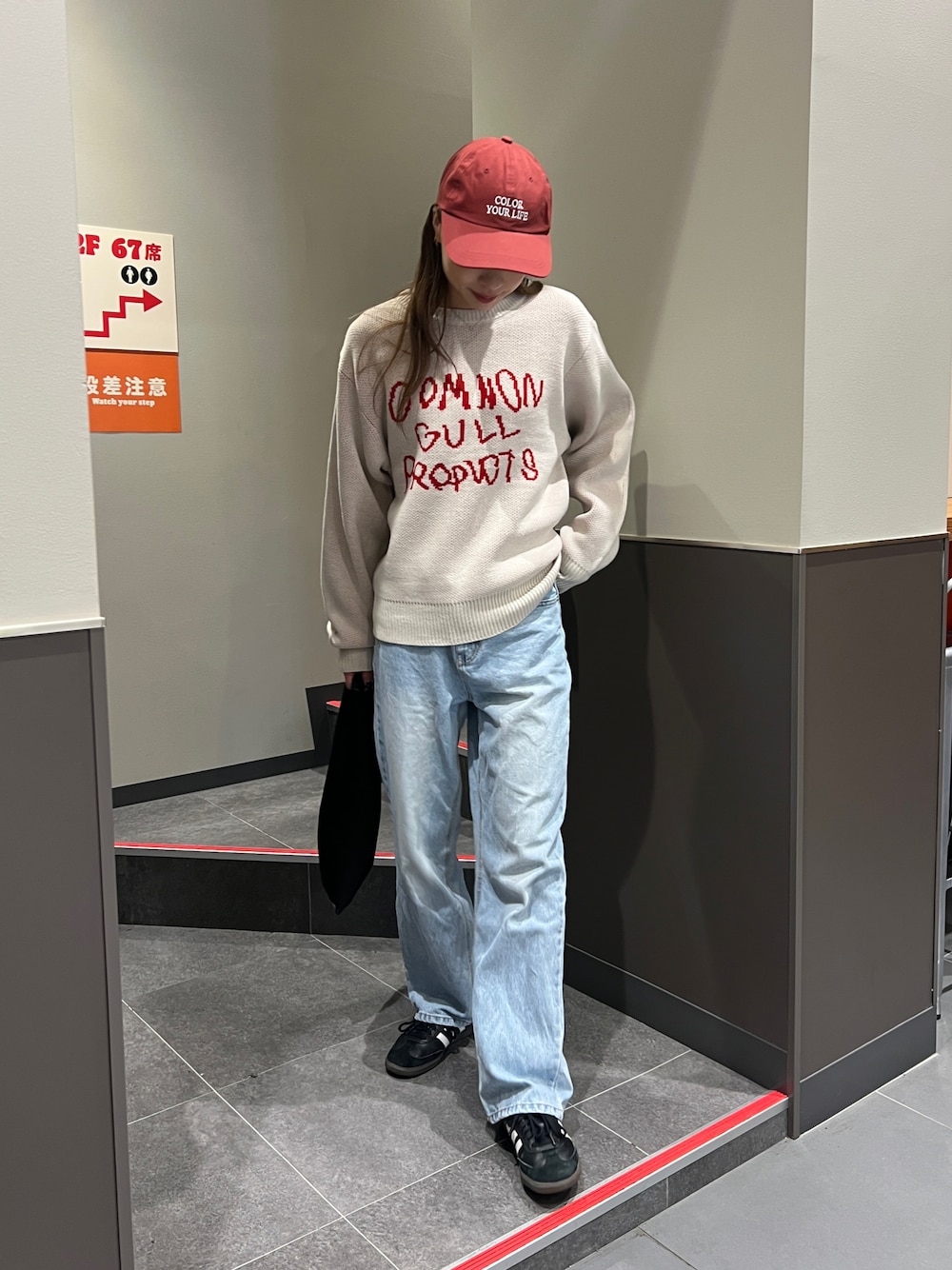 最近GETしたお気に入りニット🧶 ロゴが赤やからキャップも赤に♡ サイズもS〜Lまであるしユニセックスのデザインがいつも可愛い🫶🏻✨