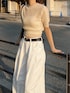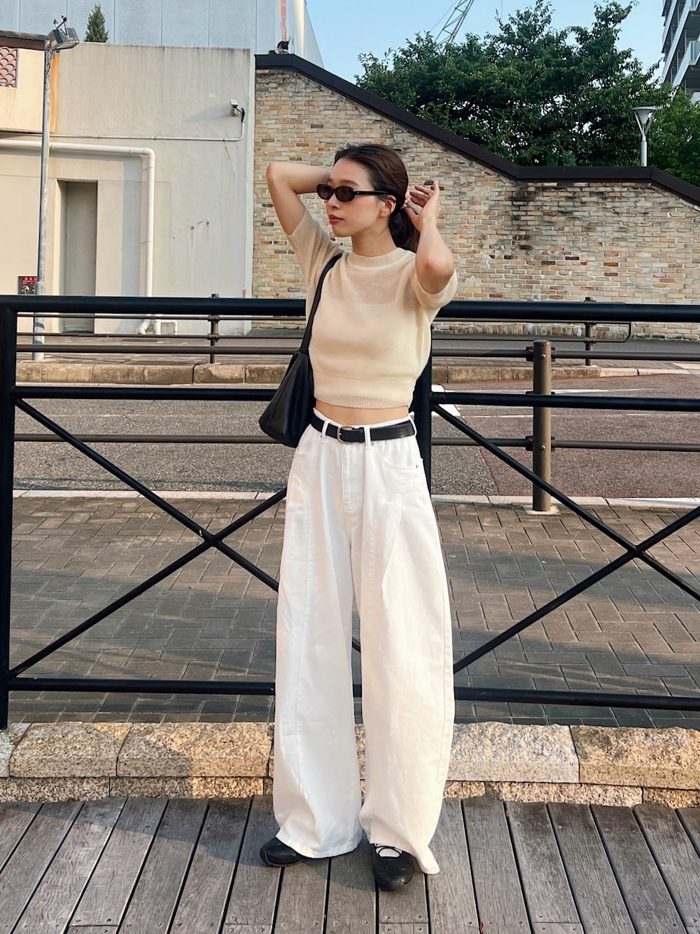 まだまだ暑いけどちょっとずつ秋を感じていきたい日のコーデ🍂 モヘアニットの半袖topsお気に入り♡