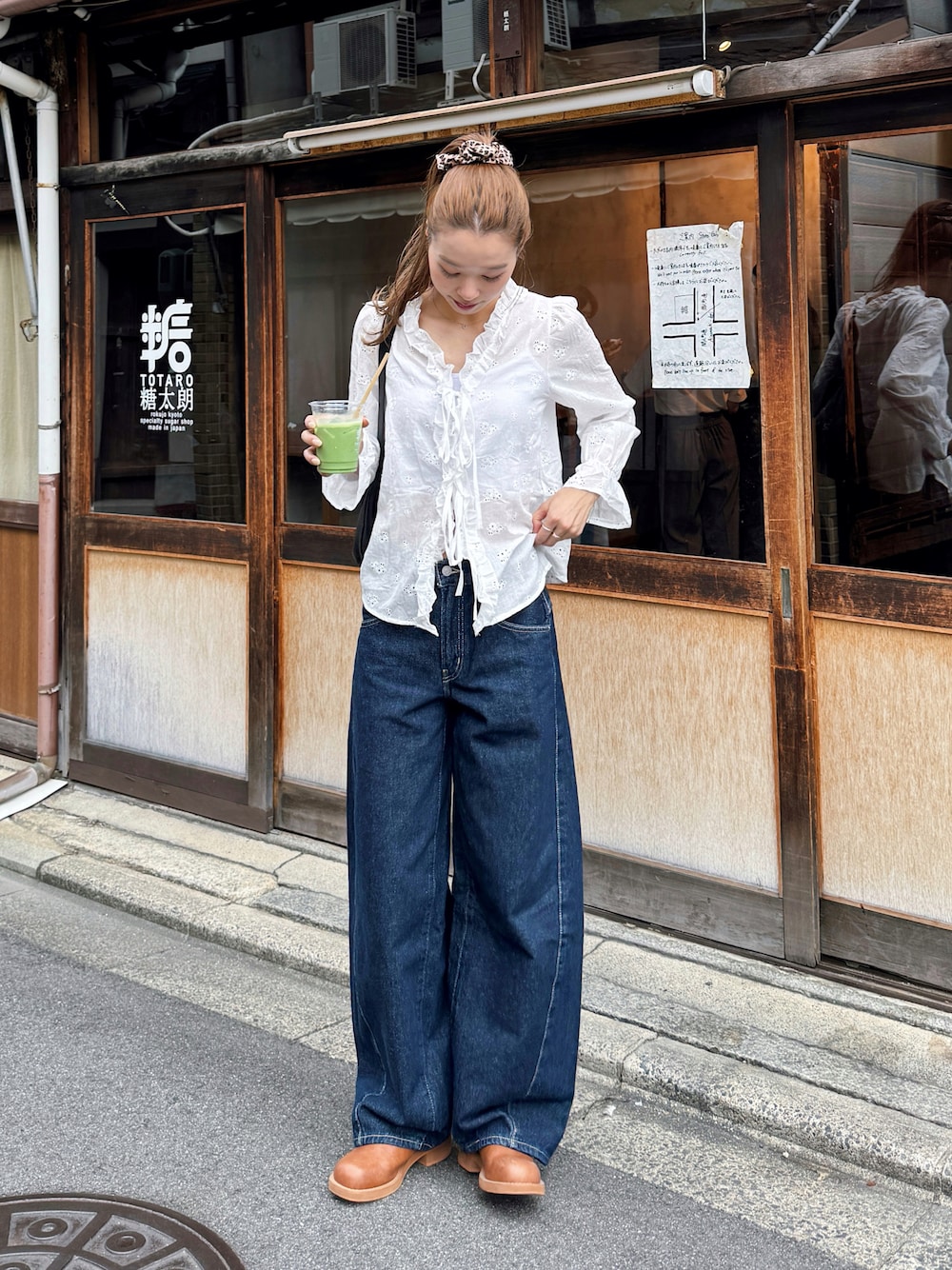 涼しくなったら着よって決めてた、 FUULLY STUDIOのブラウス🤍🕊️ 京都にお出かけした日のコーデ✌🏼