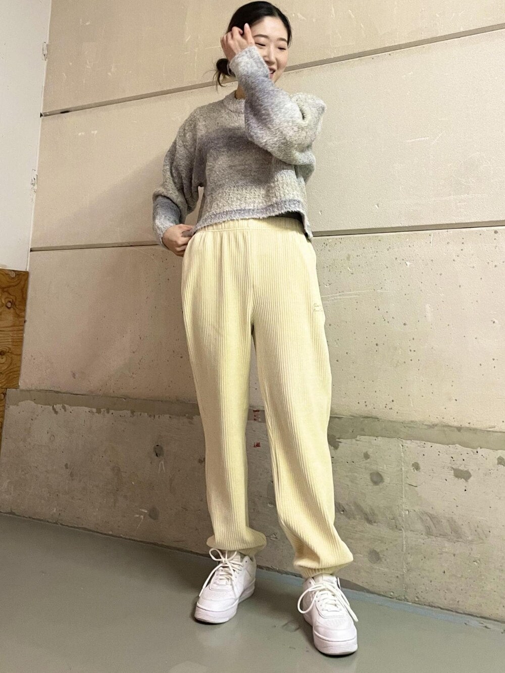 柔らかいカラー合わせと、ゆったりとしたサイジングのアイテムで揃えてリラックスしたコーディネートを組みました。 ニットの表情あるニュアンスカラーと、コーデュロイの凹凸感で、のっぺりしないコーディネイトに○ LINEで豊洲店スタッフに相談は【友達だち追加】をタップをして下さい <a href=" https://lin.ee/7uefMp6"style="background:url(https://scdn.line-apps.com/n/line_add_friends/btn/ja.png); background-size: contain; display: block;width: 116px;height: 36px; margin:.5em 0;"></a><br />