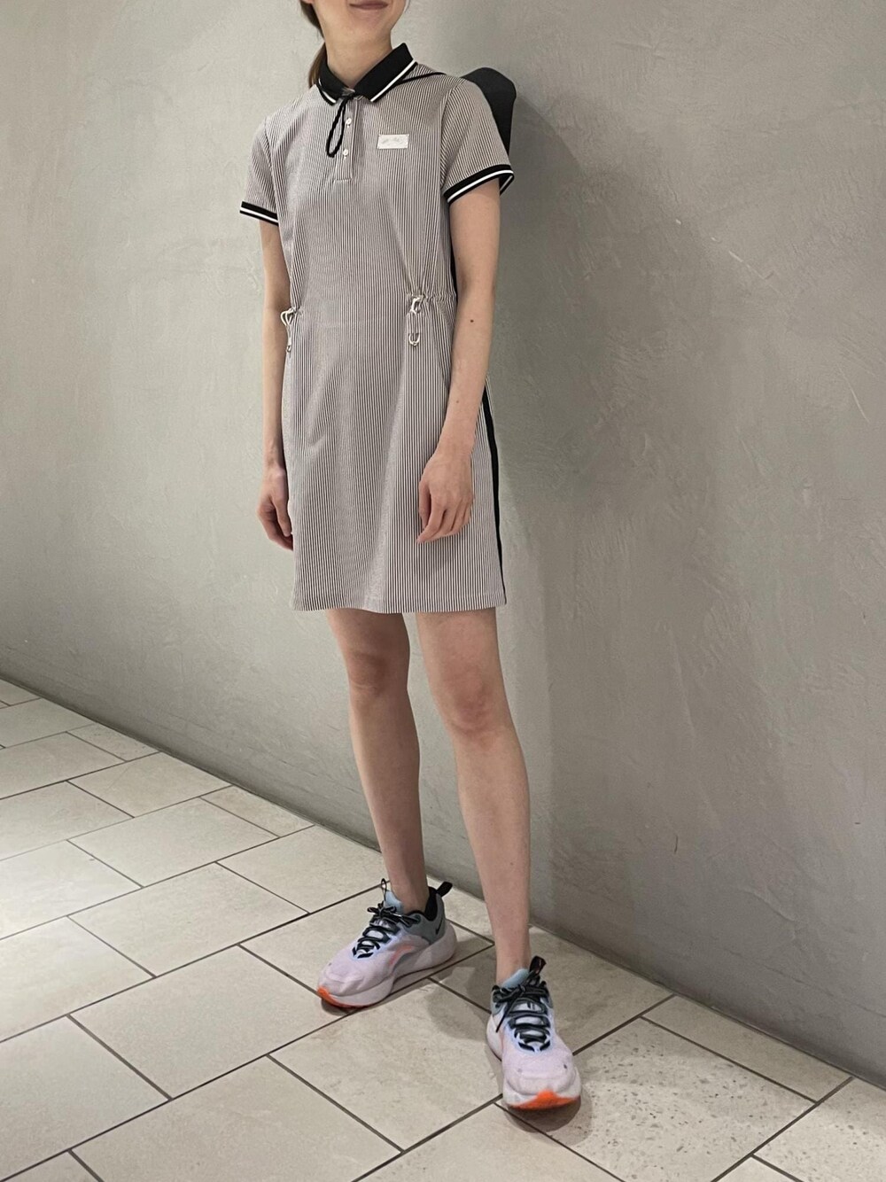 オールインワンアイテムは、シンプルに着こなすのがオススメ! 小物はブラックをアクセントに全体を引き締めた印象に○