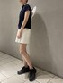 ネイビー×ホワイトのシンプルコーデ。 配色をシンプルに色数も少なくまとめれば、柄物も挑戦しやすい! ネイビーのアニマルプリントで上品な印象に○