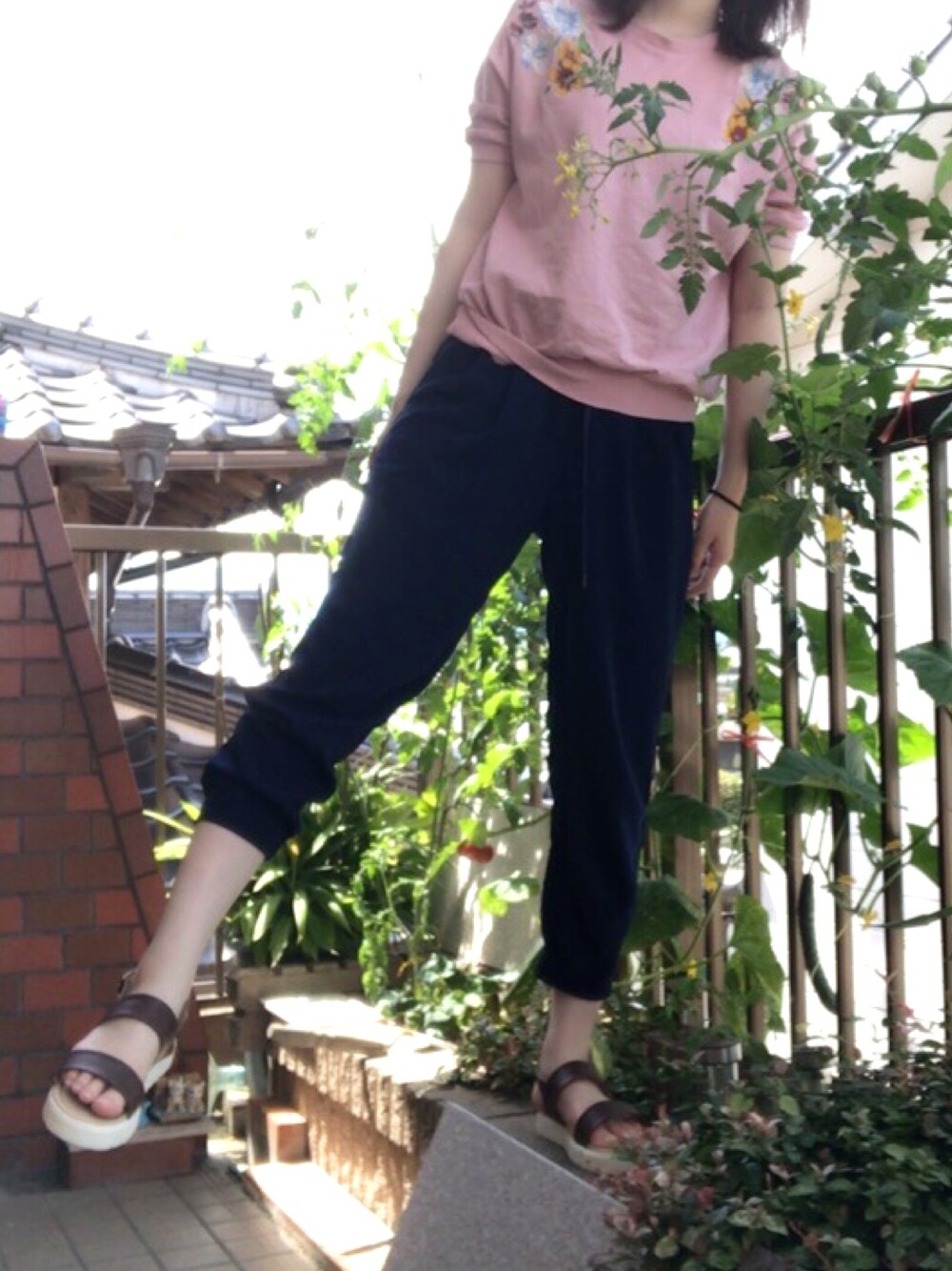プチトマトの草が邪魔しとるww ズボン上に上がっとるしトップスも折り曲がってるしちゃんと確認して撮ればよかった笑 アップでも載せてるのでよかったら見てください 笑