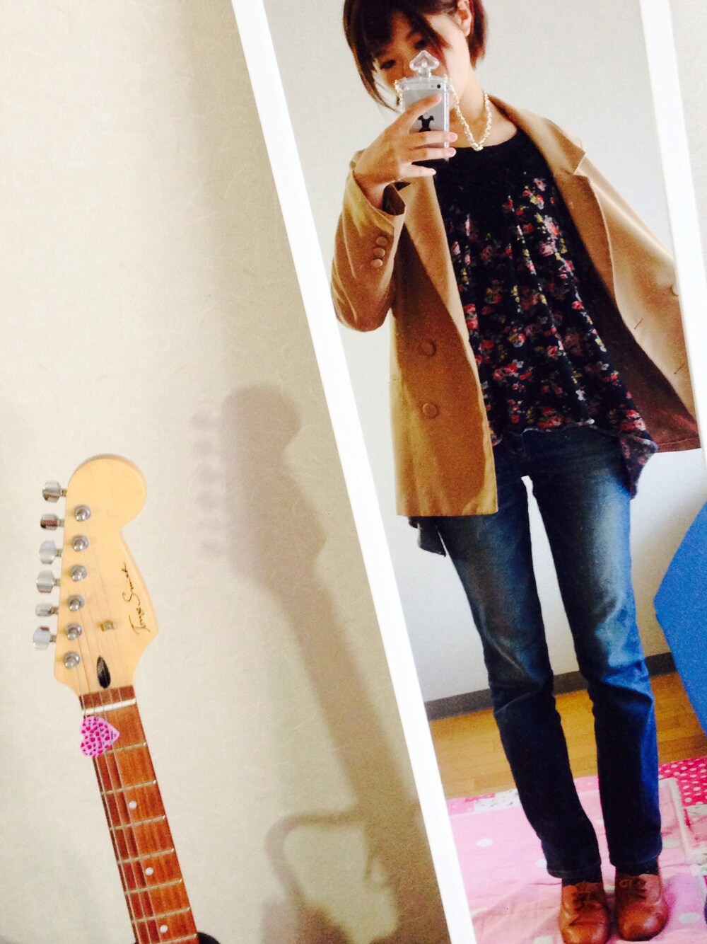 フレアな花柄のトップスの上にジャケットで引き締め感出してます! ジーンズはタイトじゃないストレートタイプ 何も予定ない日はジーンズ楽なやつ選びます