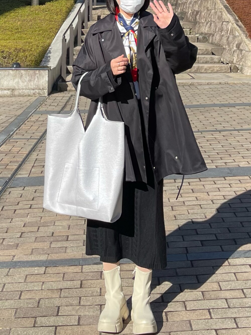 差し色つかいの女子大生のブーツ「ストレッチスニーカーブーツ 345671」を使ったコーディネート